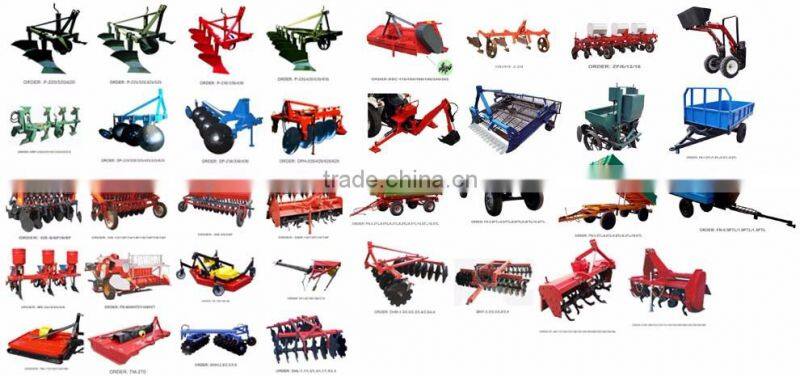 We can supply series farm implements, such as disc plough, harrow, loader, backhoe, trailer etc.