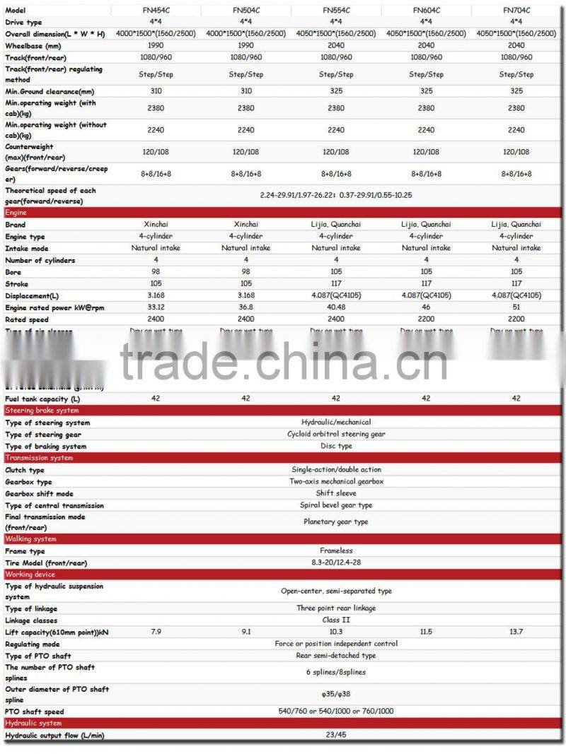 Tractor FN554C (shuttle Shift Type), 55hp,8.30-20/12.4-28 Tyre, 4 Hydraulic Valves, Power Steering