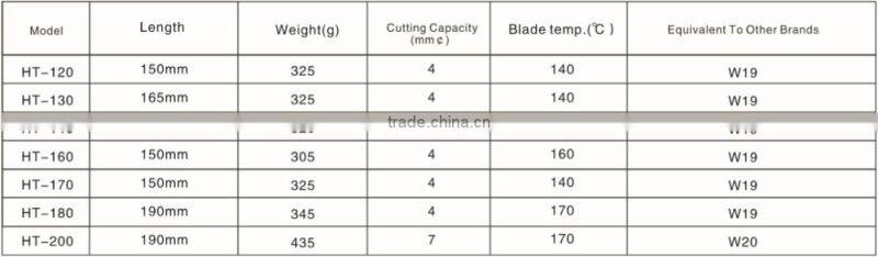| Model | Length | Weight(g) | Cutting Capacity (mm ¢) | Blade Temp. (•C) | Equivalent To Other Brand |