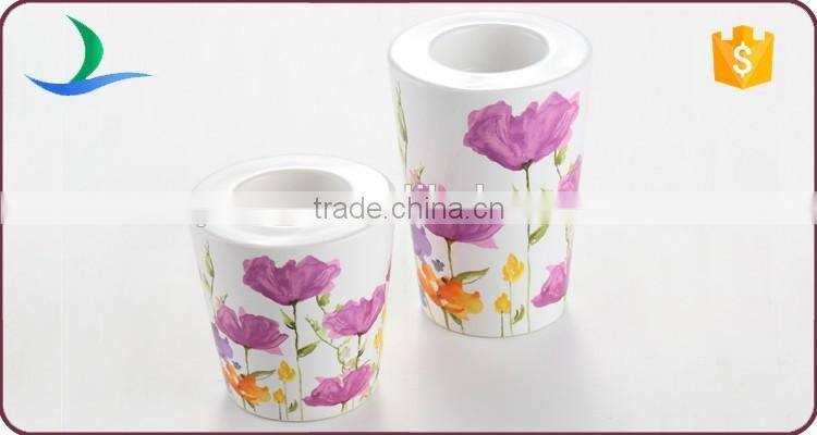 Vintage ceramic/pottery floral decal candle stick holders