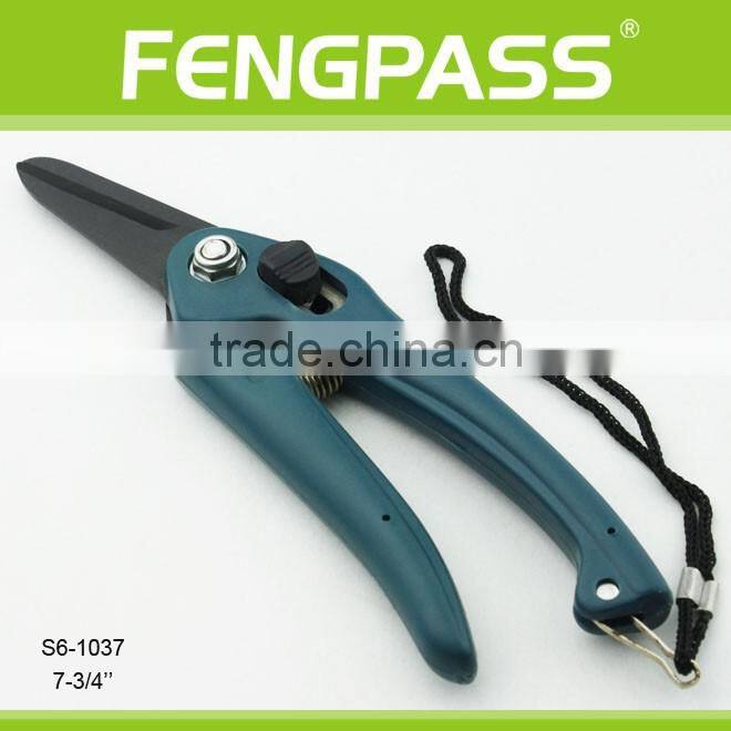 S6-1037 7-3/4 Inches Plastic Handle and High Quality Stainless Steel Blade Durable Black Coated Garden Scissors