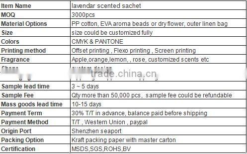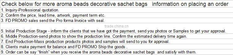 We take great pride in our work and in the wide variety of products that we offer. We are experienced in servicing the US market, European market and Africa market .Please be aware that our aroma beads decorative sachet bags and the lead times depend on specific items and quantities. Our success has been based on our understanding of the demands and nature of promotional and marketing deadlines.