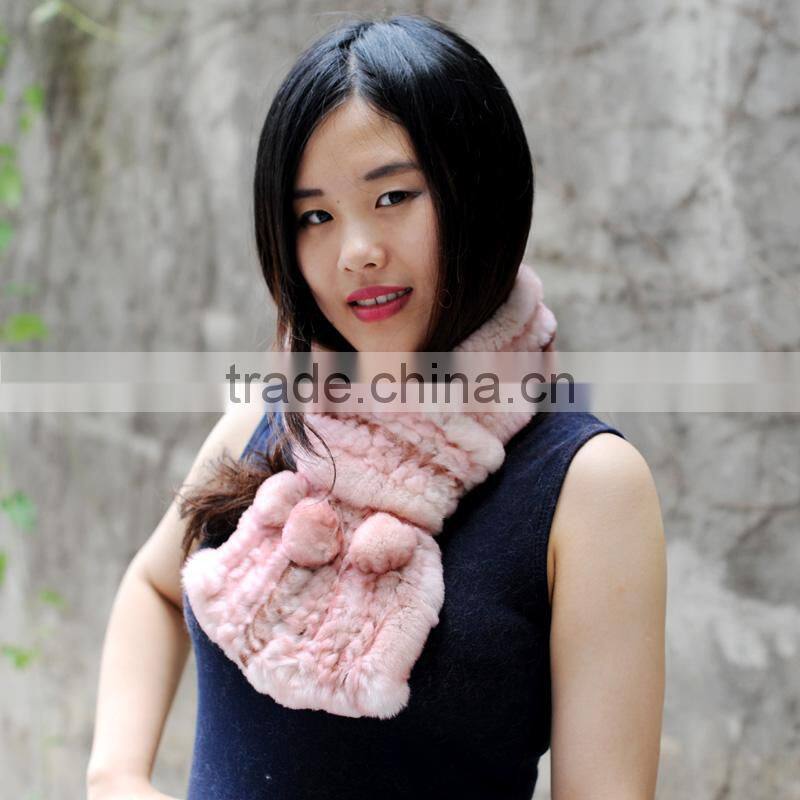 CX-S-21B 2017 Lady Pink Color Rex Rabbit Fur Knitted Women Fashion Fur Scarf