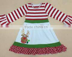 Hot Sale Stripe Bell Sleeve Reindeer Pattern Christmas Girls Tunic Dress