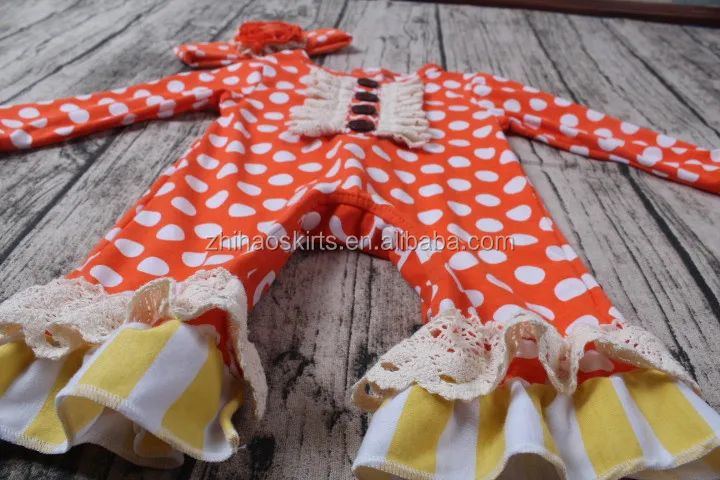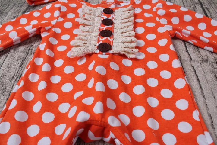 2016 Wholesale Kids Romper Cotton Lace Ruffle Romper Kids Lovely Dots Print Kids Winter Rompers