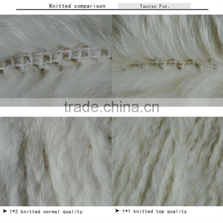 YR433 Women Stretch Real Rabbit Fur Cape Thick Knit Top Quality Fur Shawl