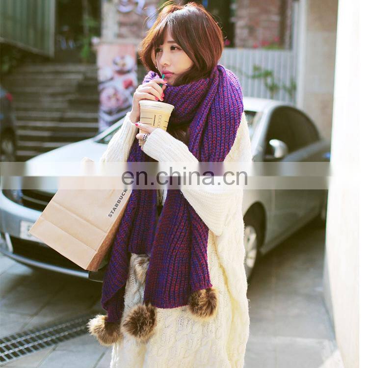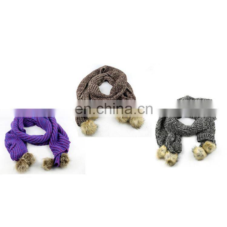 Plain cheap simulation Rabbit hair fur ball pom pom knitted scarf
