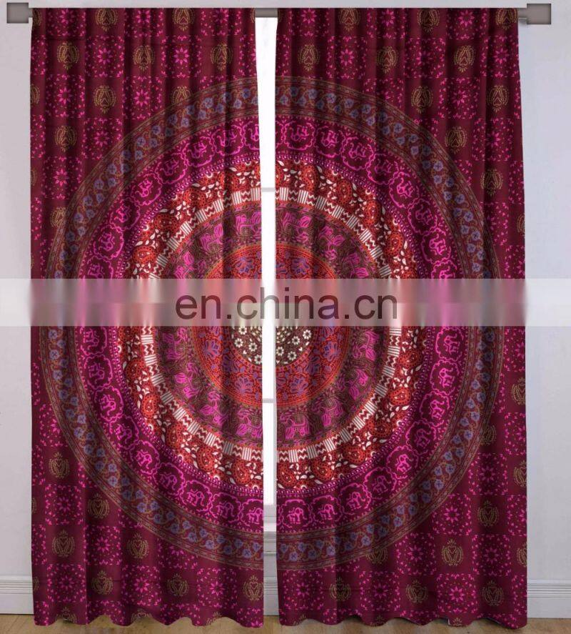 Indian Beautiful Elephant Mandala Curtains Cotton Boho Drapes Window Decor Decor Curtain