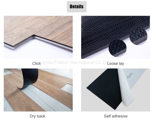 Backing type | LVT click lock | SPC Click lock | Loose lay | Glue down | Self-adhesive |