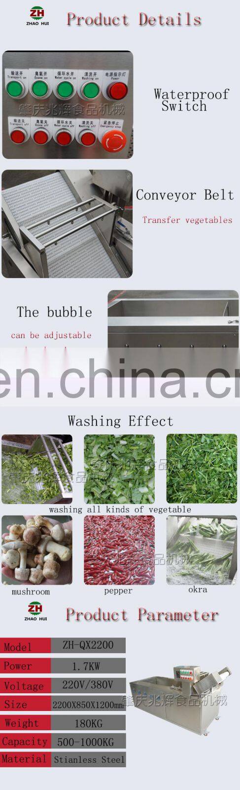 Vegetable Bubble washing Machine adopts high pressure to produce bubble. You could add circulating surfing with bubble washing and high pressure spraying for third times washing. It can separate silt or impurities efficiently. Machine supplied water continuously and water volume can be adjustable. It is convenient for user to adopt the handling capacity and washing cleanliness as requirement. Machine is made of stainless steel.