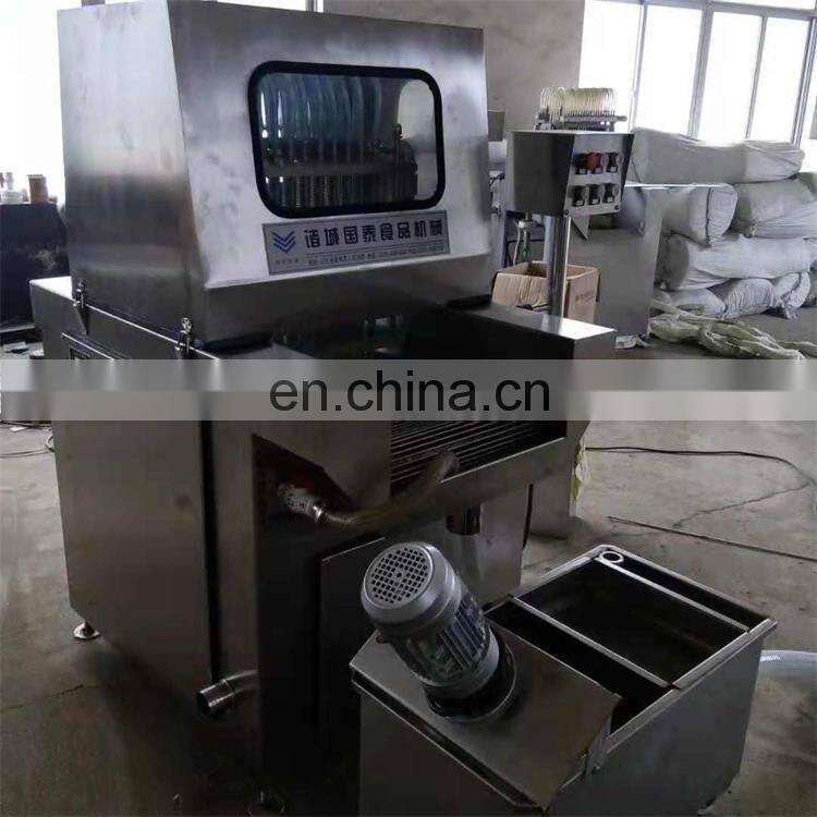 The machine adopts the tooth shape step feeding, the step distance is accurate, the meat is supported by three groups of detachable grillage, the injection needle is controlled by spring, which can really achieve the bone injection.
