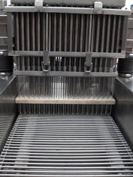 1) The automatic brine injecting machine adopts tooth form stepping to feed meat, with accuracy stepping distance. The meat materials use three dismountable lattice bar to support, the entry needle adopts spring to control, so as to realize inject the meat with bone.