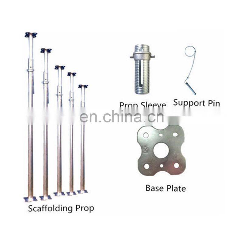 1. Steel Prop is made of upper plate, inner tube, outer tube, pin,nut,sleeve and bottom plate.