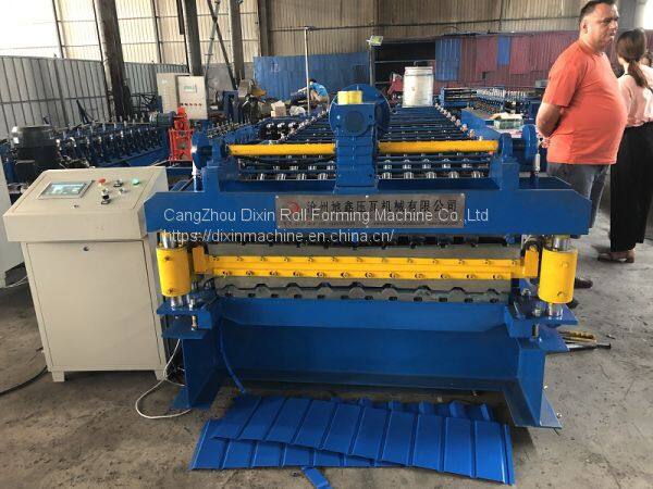 Export to Poland 1080 trapezoidal double layer roll forming machine with post guid cutting