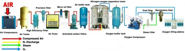 ↗Oxygen Compressor / Booster (0.6MPa / 6Bar) → Oxygen Tank → Oxygen Pipeline System