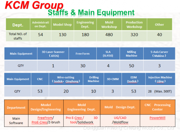 | Design & Program Softwares: | CAD, CAM, CAE, Pro-E, UG, Soild works, Moldflow, CATIA....etc. |