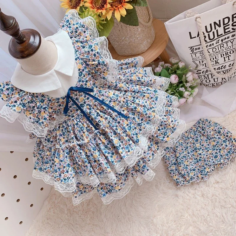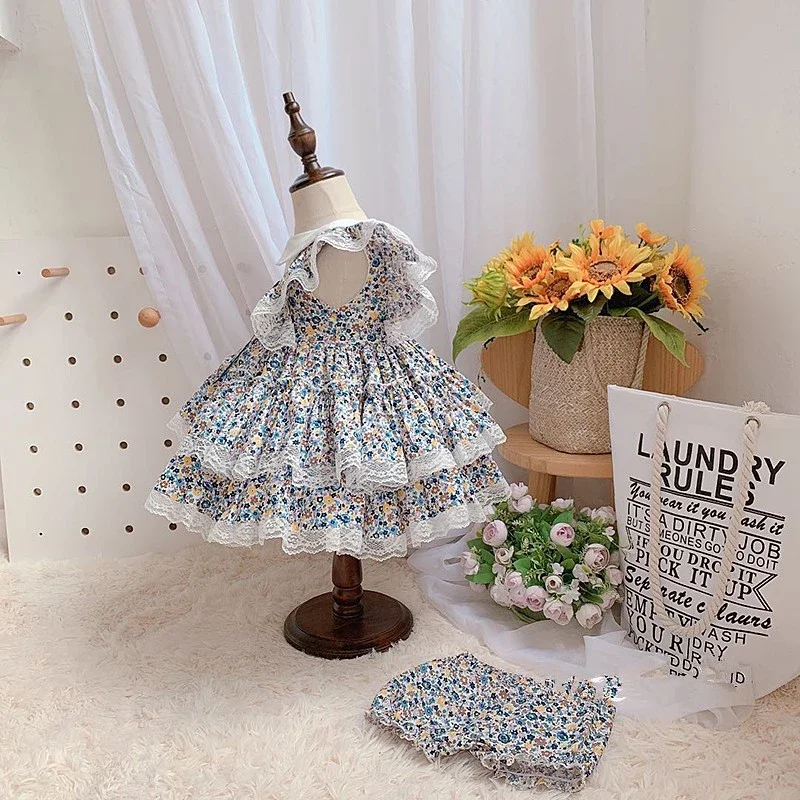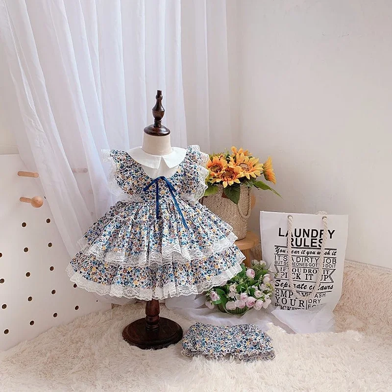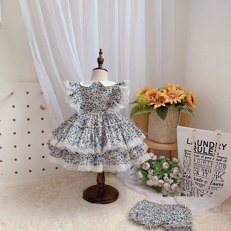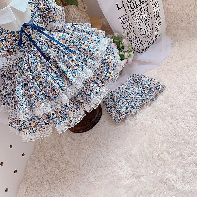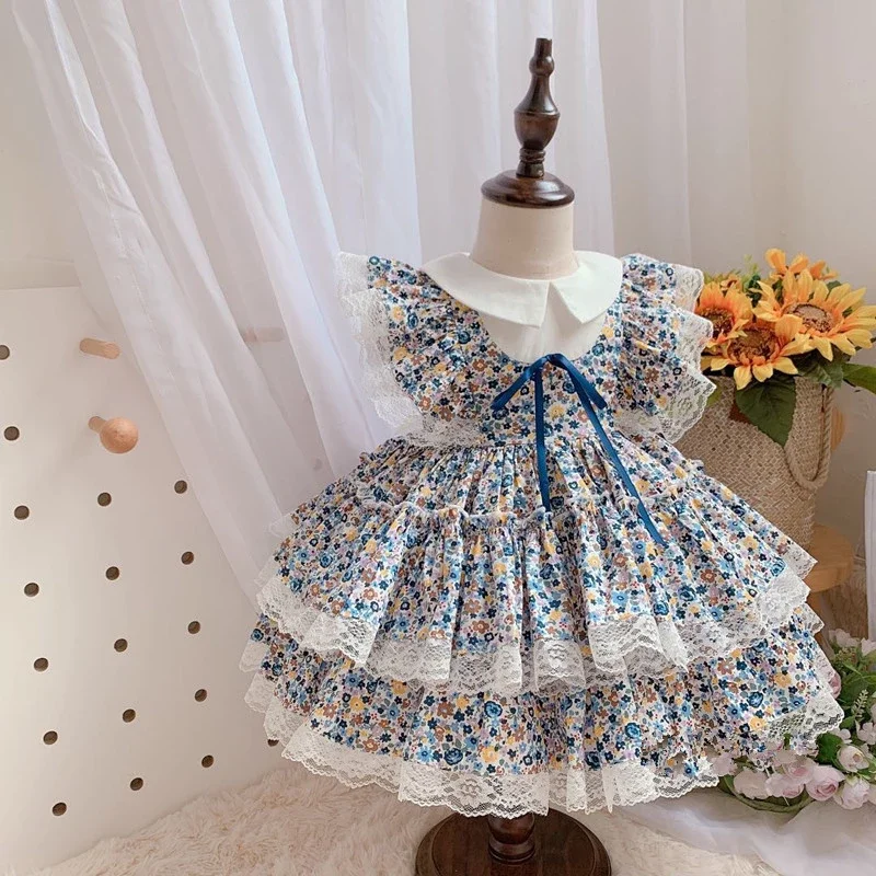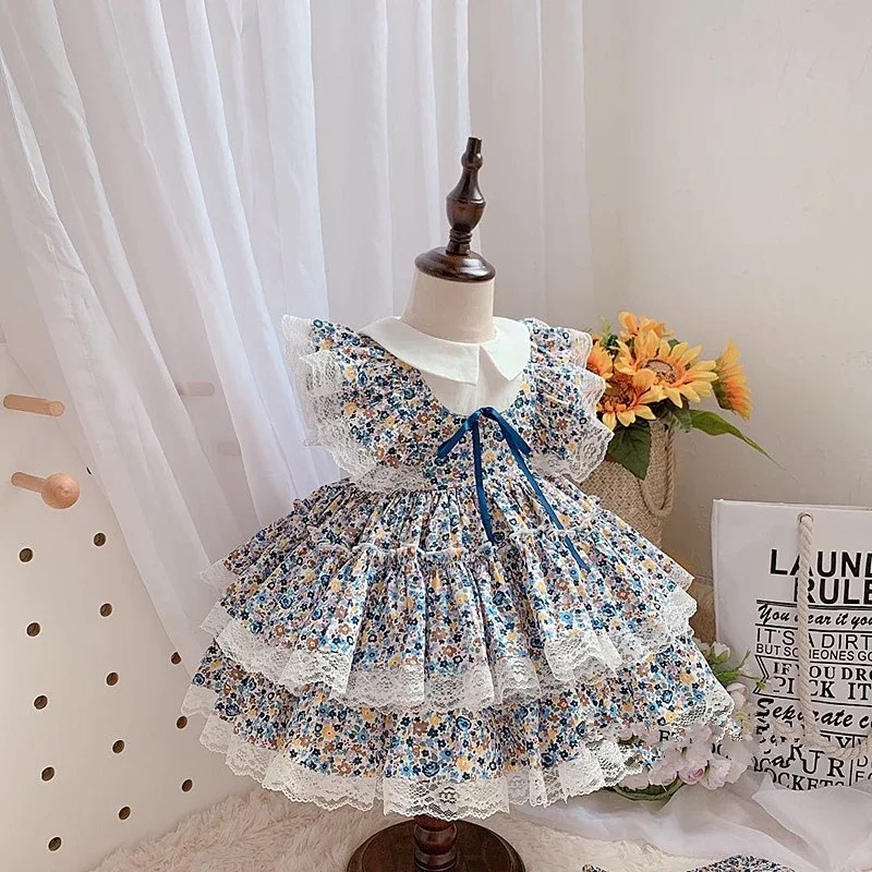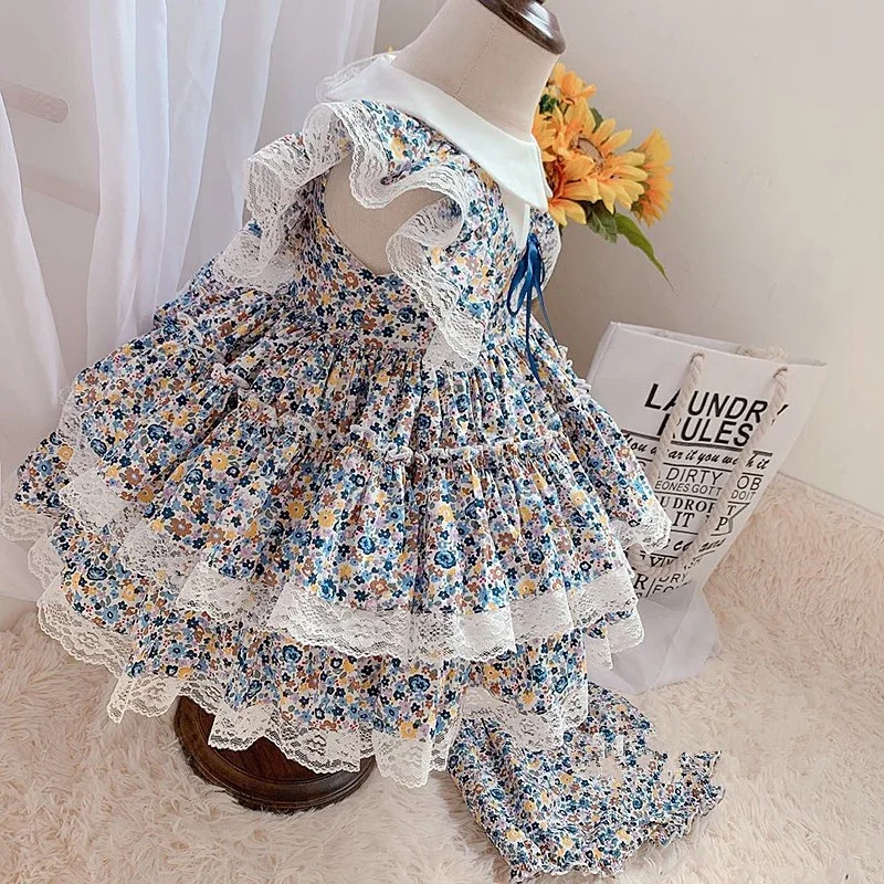 Spanish Lolita Girls Princess Dress Lace Stitching Sleeves Print Dress for Girl Birthday Party Easter Vestidos