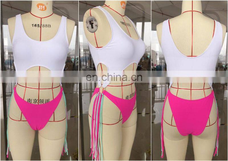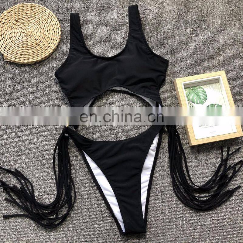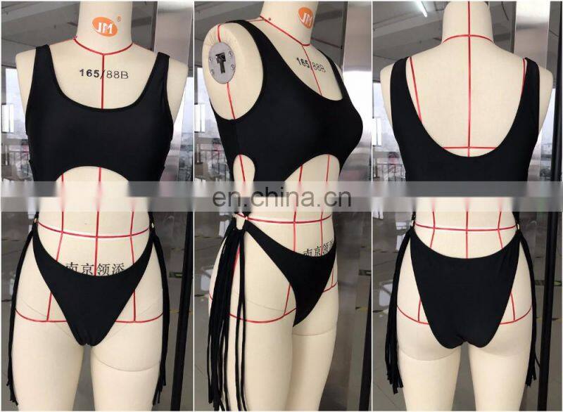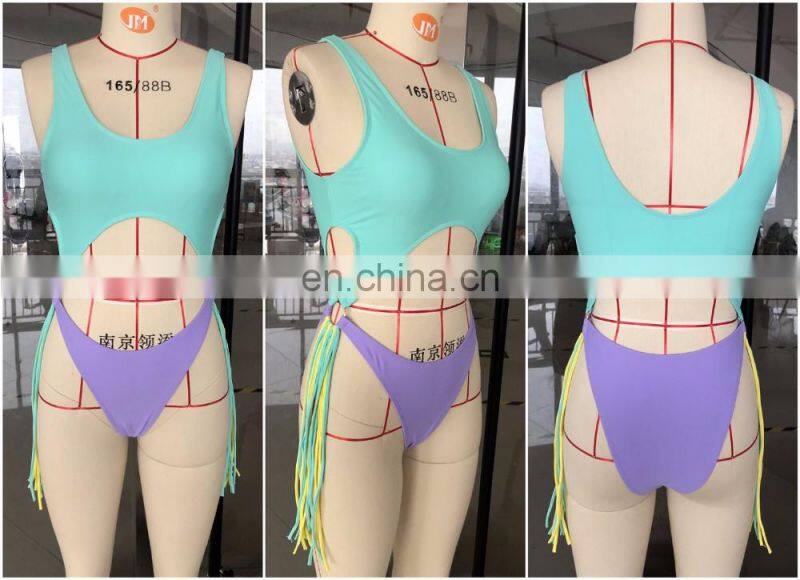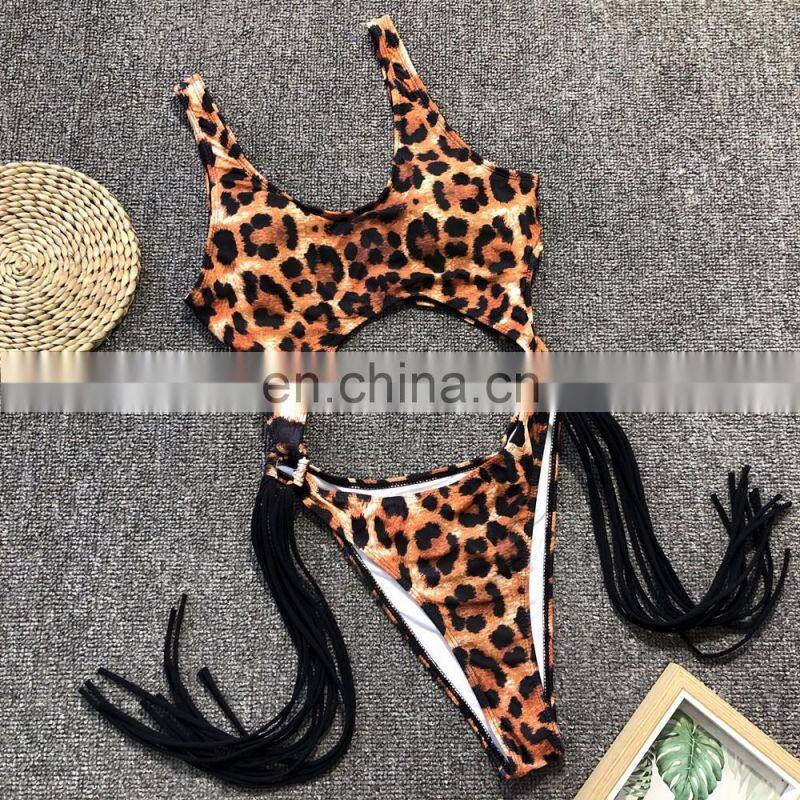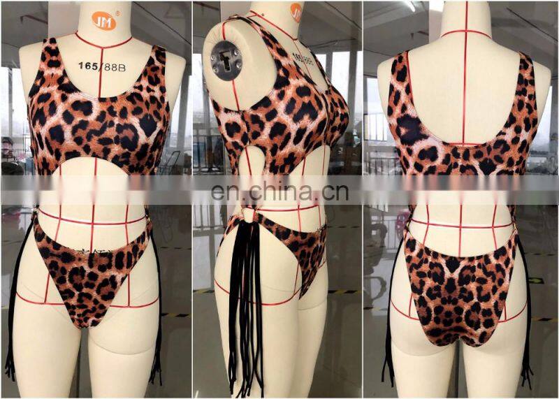 2019 Summer Leopard Beach Sexy Cutout Steel Ring Fringe One-piece Bikini With Chest 5colors