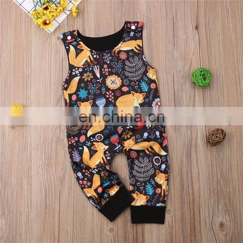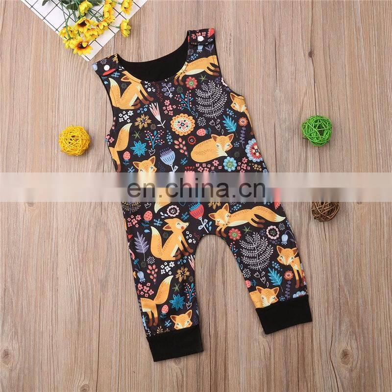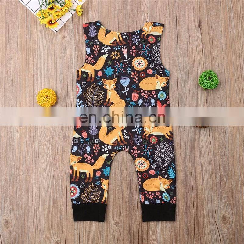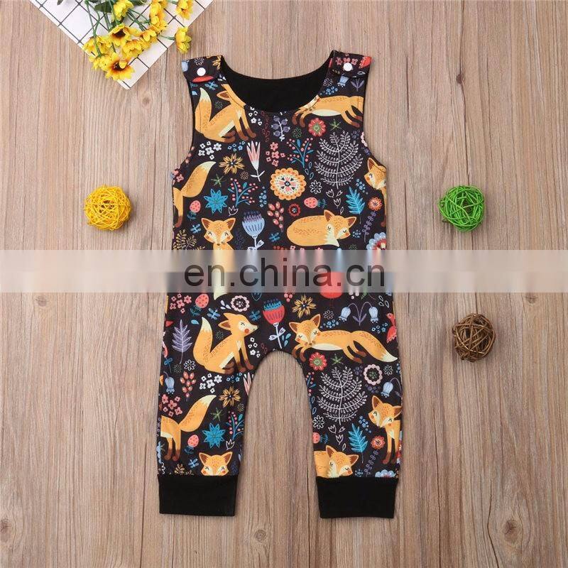 Kids Fox Print Zoo Bodysuits With Pocket Striped Full Print Girls Rompers Long Sleeved Kids Jumpsuits 0-2years Free Shipping