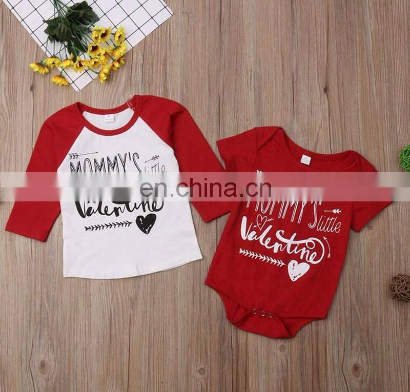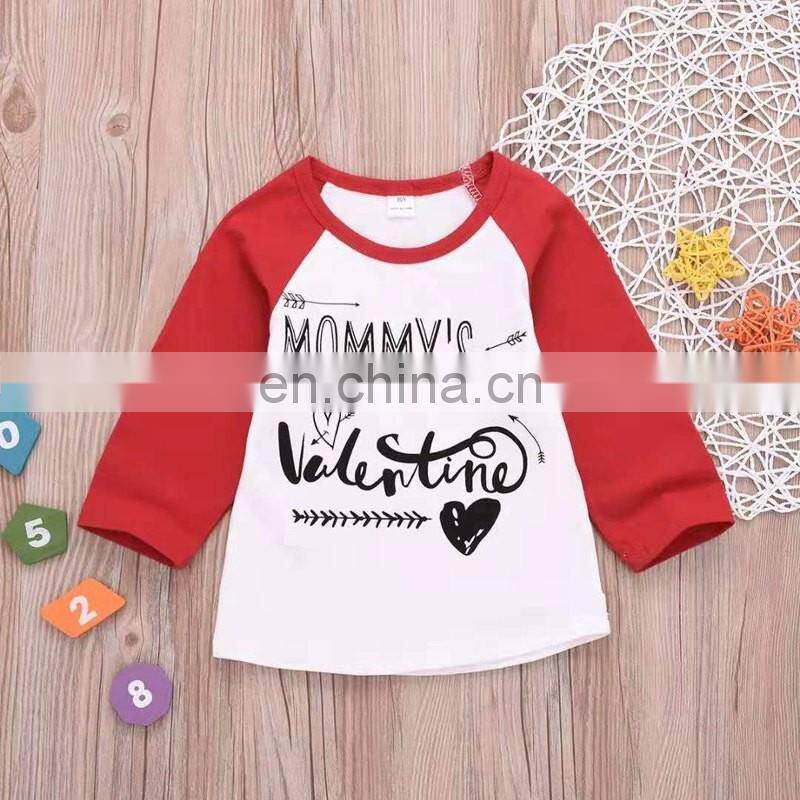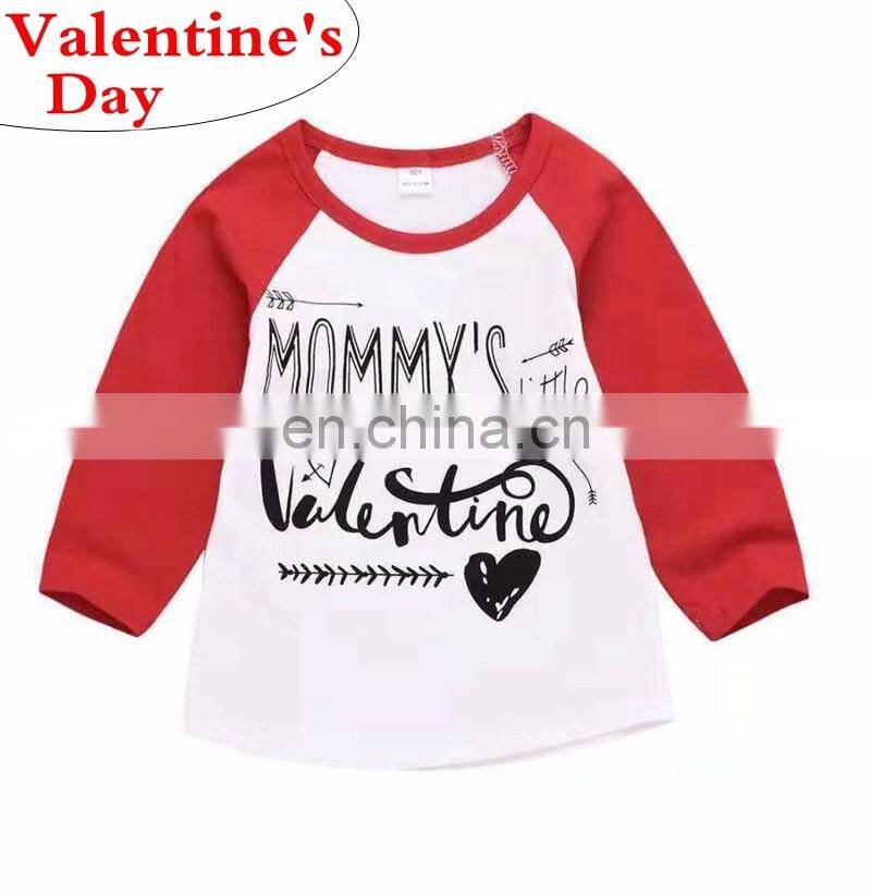 2019 Valentine Day Girls Letter Print Cotton Tshirt Tops Shirt for Girls Raglan Sleeve Cloth 1-5T