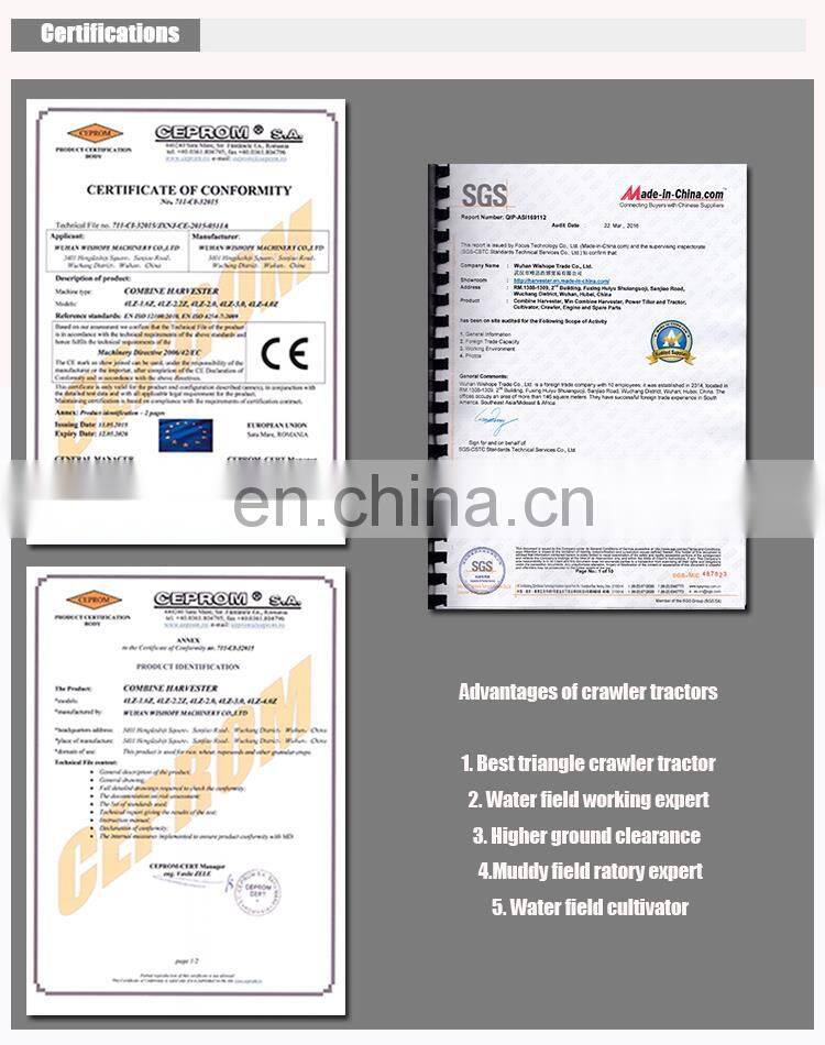 Our crawler rubber track tractor is expert in muddy field, and rubber track wheel can reduce the land damage ,