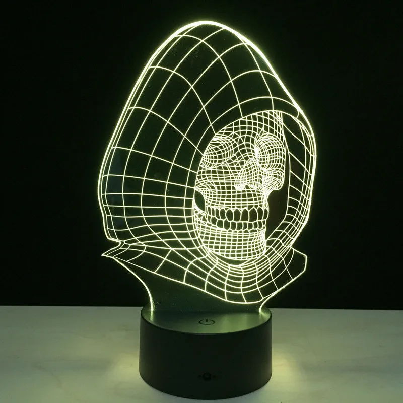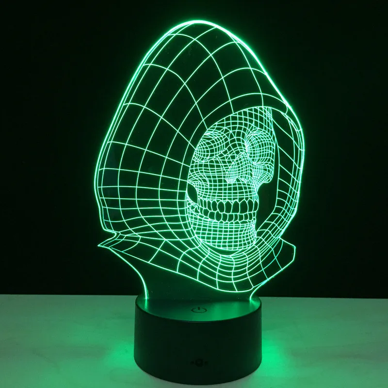Halloween Wizard Skull 3D LED Night Light Action Figure 7 Colors Touch Table Decoration Light Optical Illusion Model