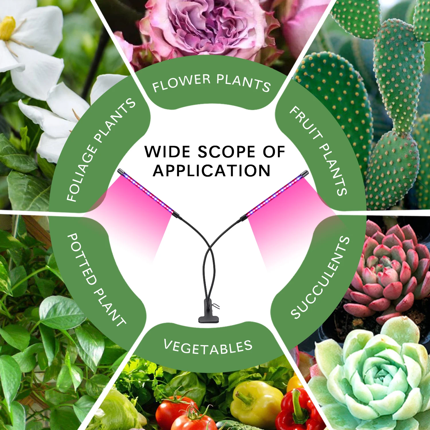 Our grow lamp provides 5 dimmable modes and 3 spectrum modes to suit varied stages of plant growth. It adjusts to levels of 10%-100% light intensity and has 3 spectral modes (red, blue, and mixed light) to meet different stages of plant-growing needs