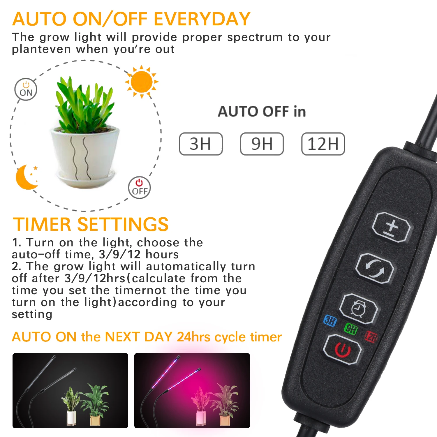 Lamps with an automatic timing function, not only can you set it up for lighting every 3 hours, 9 hours or 12 hours, but you can also adjust the brightness of the light and the distance between the light and plants, according to plant needs.