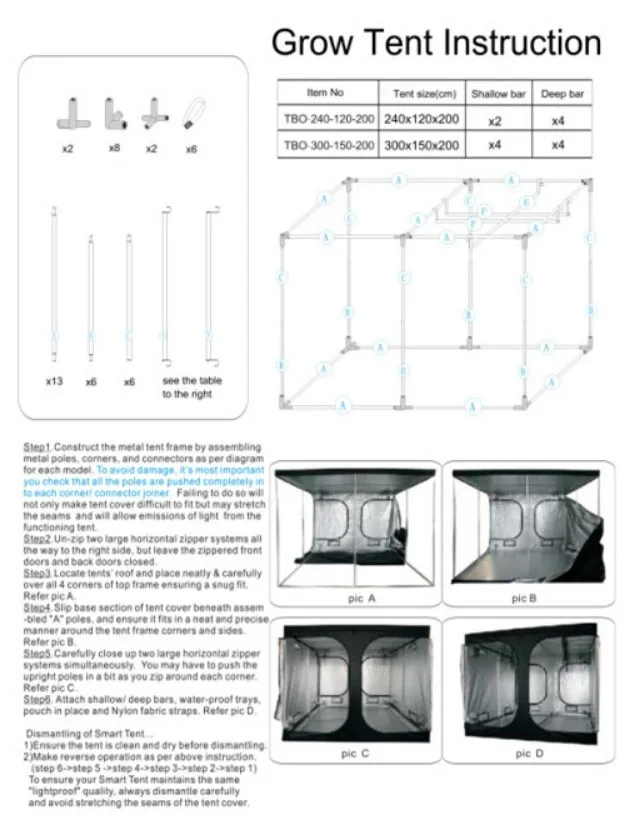 Highly Reflective Fabric 600D 120x120x200mm Hydroponic Grow Tent for Indoor Plant