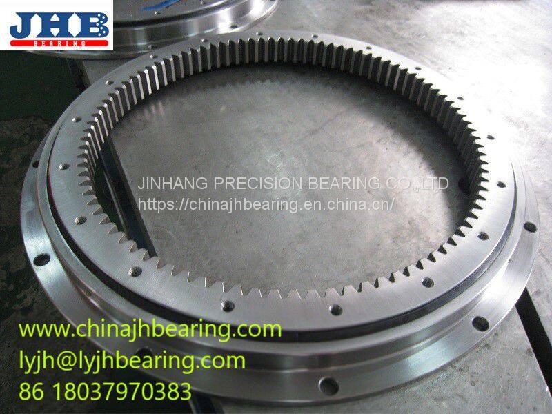 VLI 201094 N slewing bearing is composed of two seat rings. It has compact structure, light weight, and four-point contact between steel ball and arc raceway. It can bear axial force, radial force and overturning moment at the same time. The construction machinery of rotary conveyor, welding manipulator, small and medium-sized crane and excavator can be selected. The outer diameter:1198mm,Inner diameter:984mm,Height:56mm, It is the light series bearing structure with internal teeth.