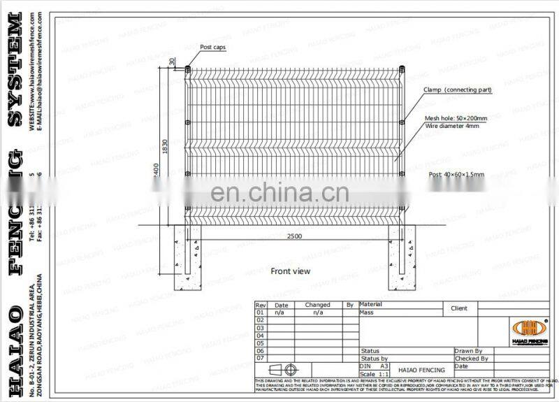 Panel height | Panel length | Wire diameter | Mesh size | Curves |