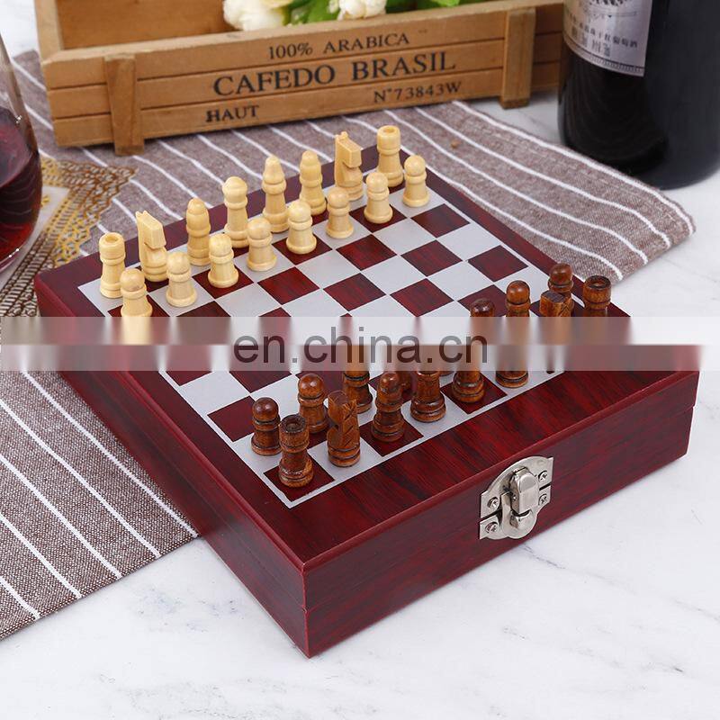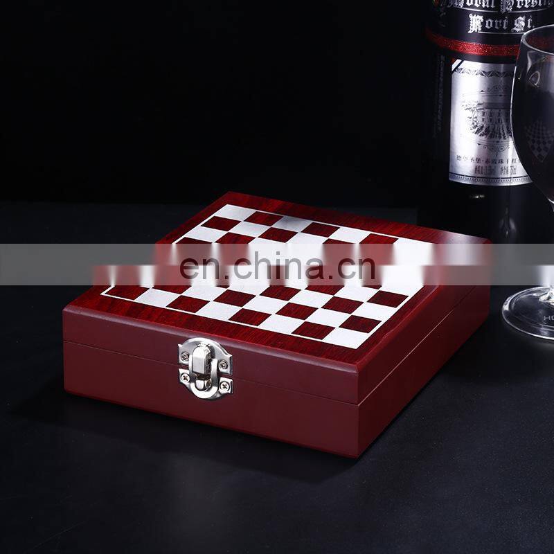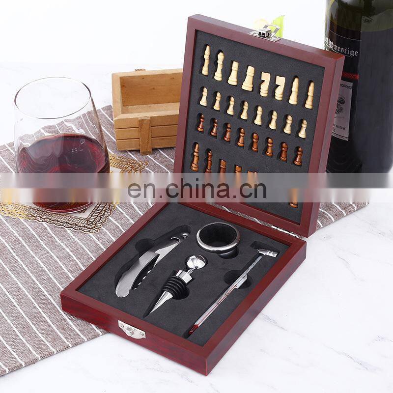 Multi Functional Entertainment Wooden Box Wine Bottle Opener Set With Chess Wine Set Can Be Customized