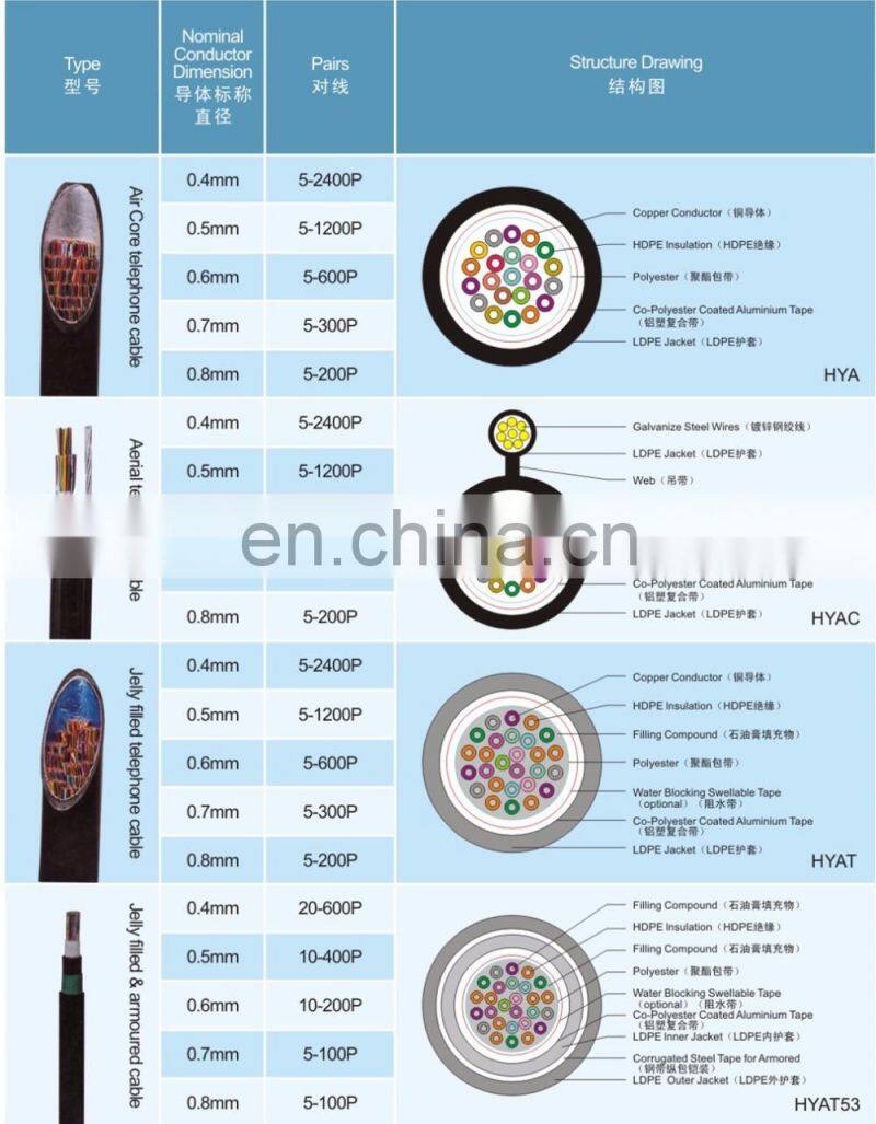 Telephone Cable HYA/HYAC/HYAT/HYAT53