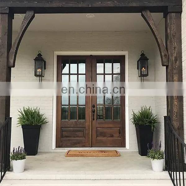 Antique Prehung Fiberglass Exterior Wooden Front Door With Windows Double Entry Doors for Sale