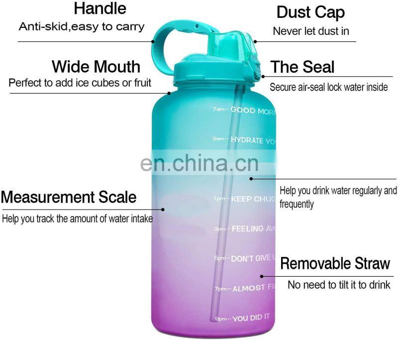 Best Seller BPA Free Colorful Plastic Motivational Half Gallon Water Bottle With Flip-Top Lid