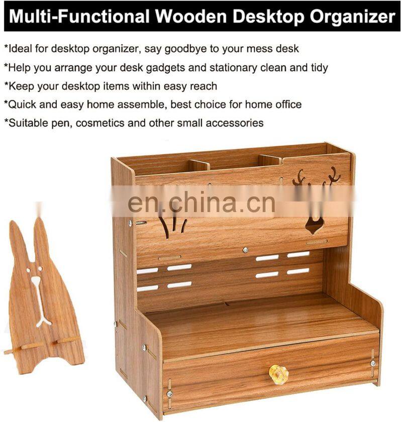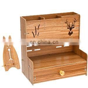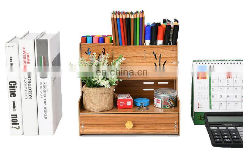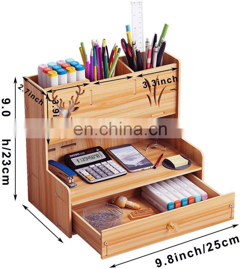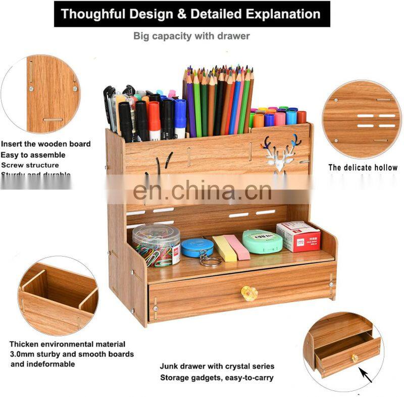 Wooden Pen Organizer Multi-Functional DIY Pen Holder Box Art Supply Organizer Desktop Stationary Storage With Drawer for Office