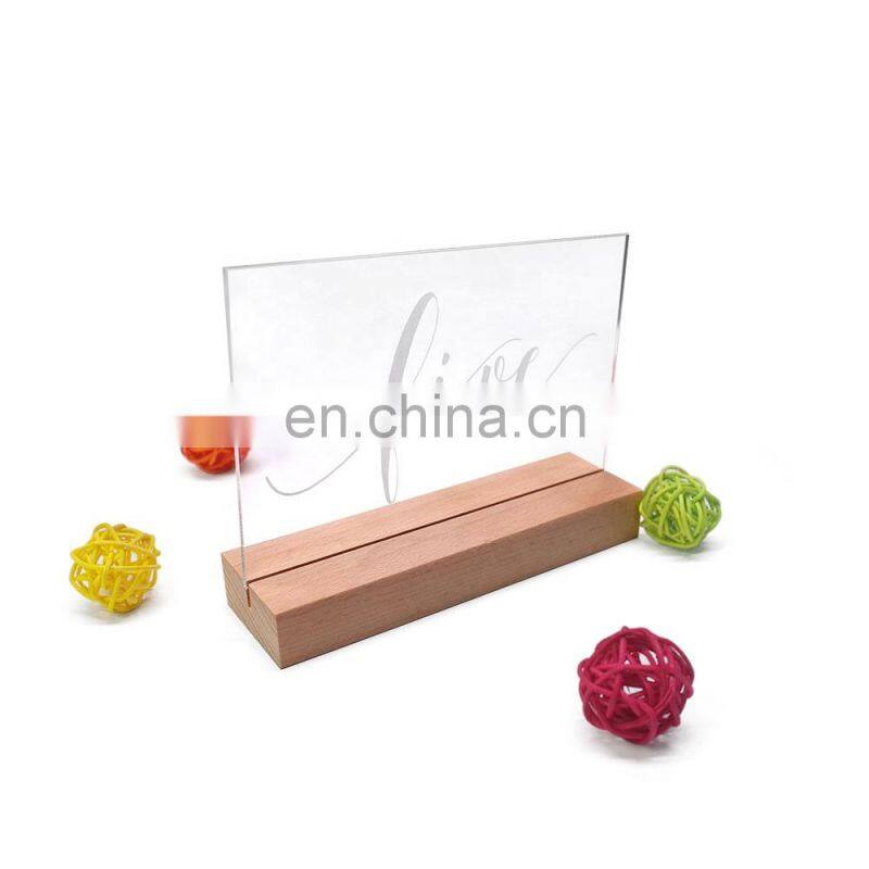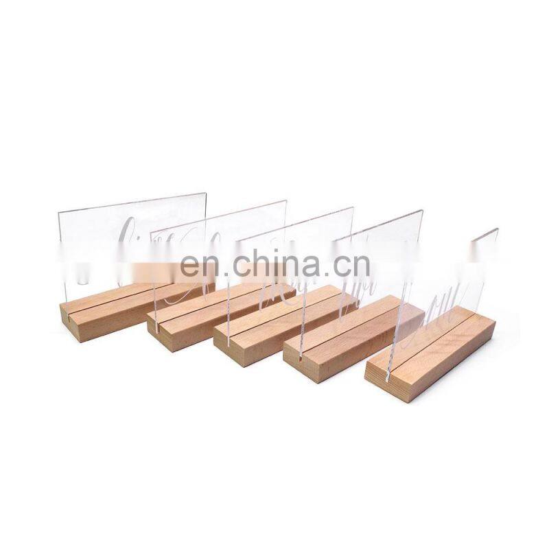 Acrylic Table Sign With Wooden Stands, 5 x 7 Inch Acrylic Sheets Top Menu Display Signs Wedding Birthday Party Table Sign