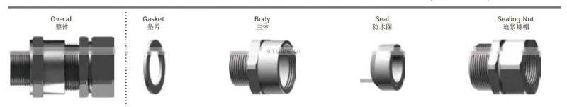 Exploded View of CE ATEX UL-approval Single Sealing Stuffing Explosion-Proof Nickel Plated e1w Cable Gland For Junction Box