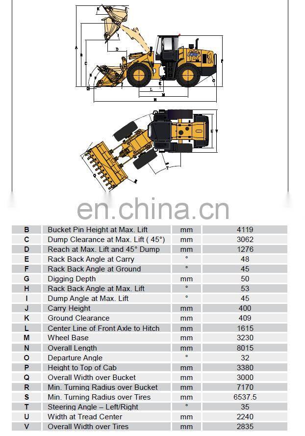 | C | Dump Clearance at Max. Lift ( 45°) | mm | 3062 |