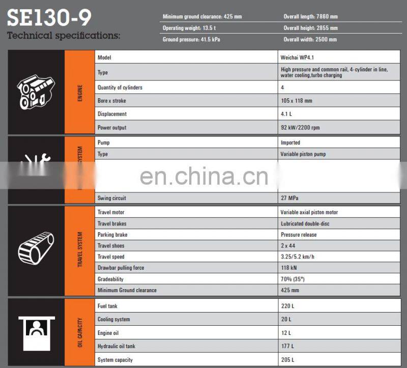 SHANTUI 13ton tracked excavator SE130-9 with excellent performance