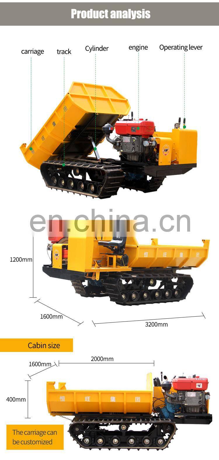 Hengwang HW3000L Large Loading Capacity Mini Crawler Dumpers Tracked Dumper Rubber Track Carrier For Sale