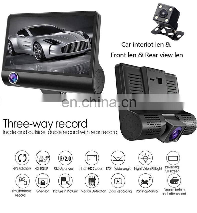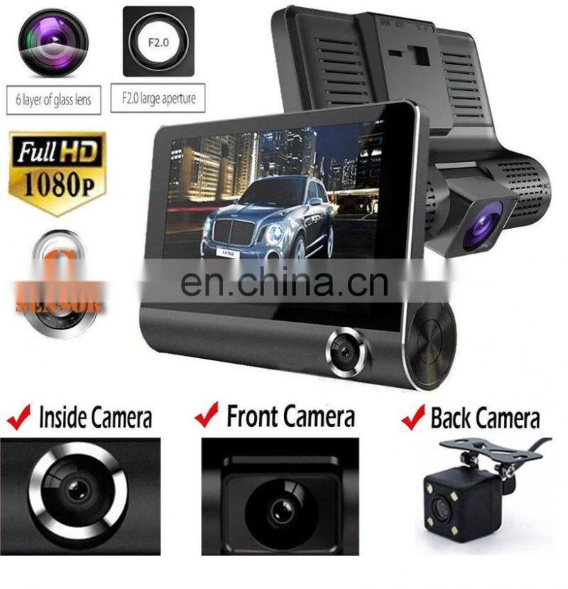 Best 4.0 Inch IPS Screen Triple Lens 1080p Full HD Car Video Camera Dash Cam Dual Camera HD Digital Black Box For Car