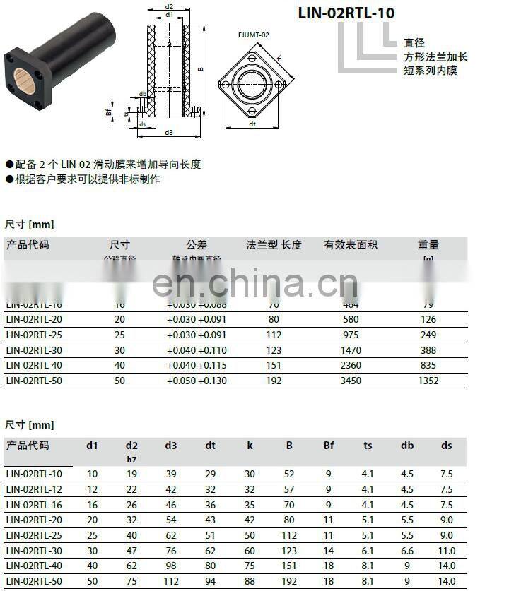 LIN-02RTL-20 Replace FJUMT-02-20 IGUS 20mm Square Flange Lengthening Engineering Plastic Linear Slide Bearing