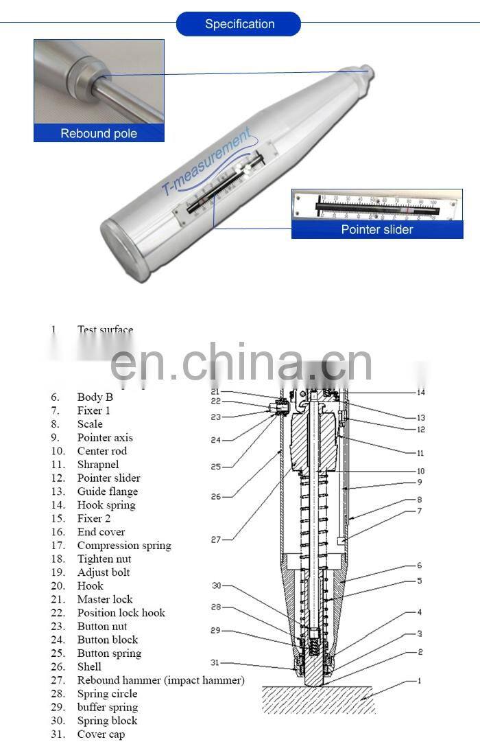 The hammer measures the rebound of a spring-loaded mass impacting against the surface of the sample.