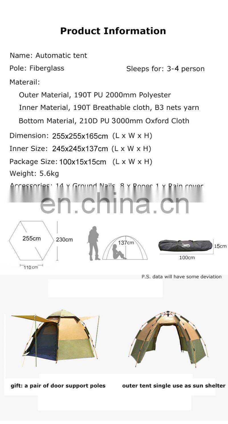 Wholesale Outdoor Tent Outdoor Camping Double Open Automatic Double Spring 3-4 People Beach Waterproof Camping Tent