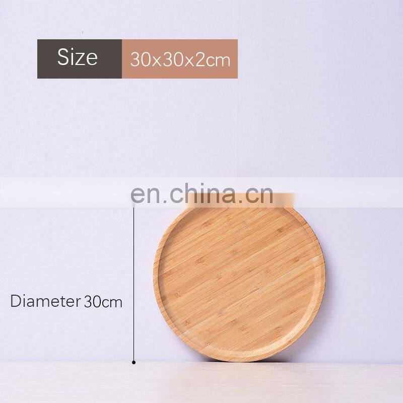 Natural Ecofriendly Round Wooden Platter Snack Food Bamboo Serving Tray