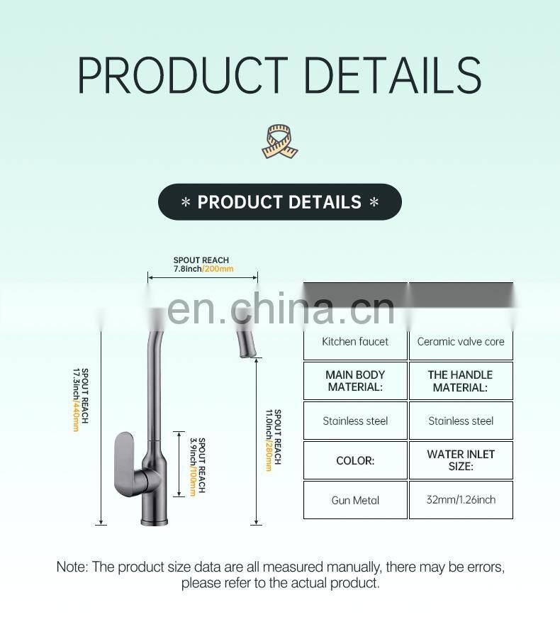 Hot and Cold Kitchen Faucet Mixer Gun Metal Stainless Steel Single Handle Kitchen Faucet