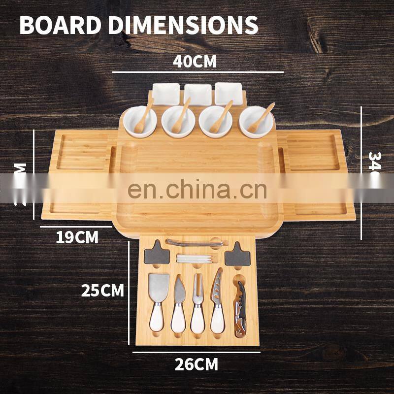 Deluxe Personalized Winery Best Cute French Large Bamboo Cheese Board Set With 4 Drawers