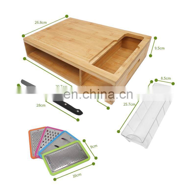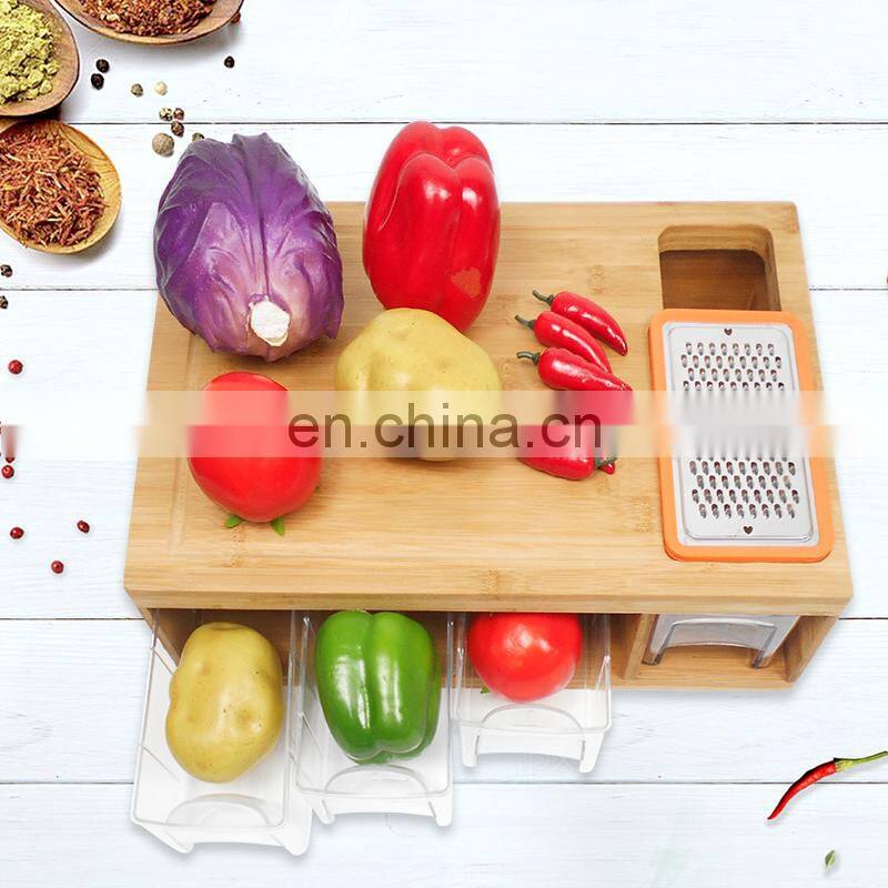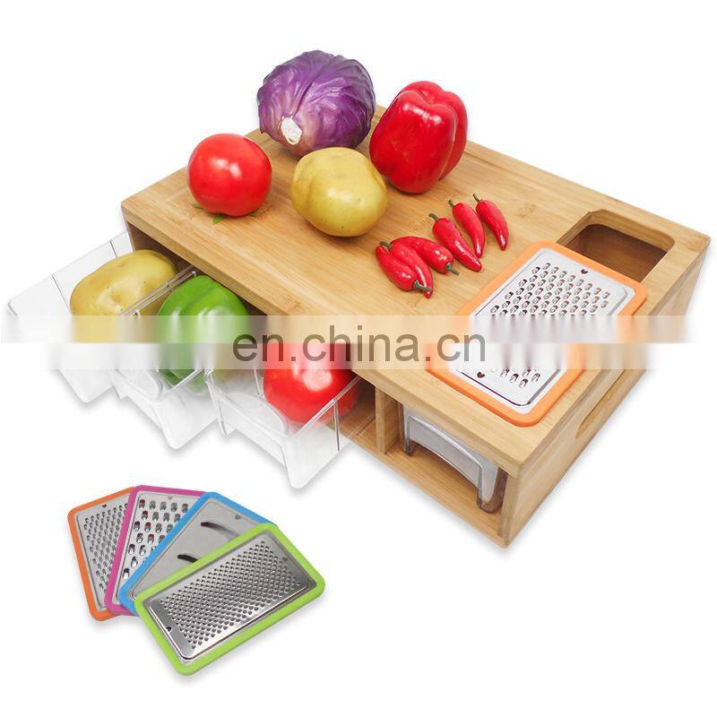 Large Bamboo Cutting Board With 4 Trays for Easy Food Prep and Cleanup