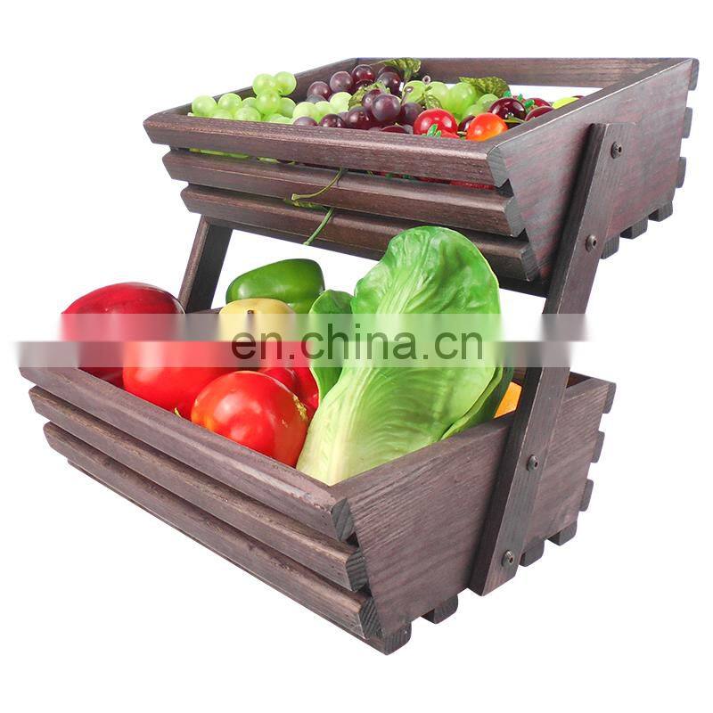 Wooden Fruit Basket 2 Tier Fruit Vegetable Bread Storage for Kitchen Countertop